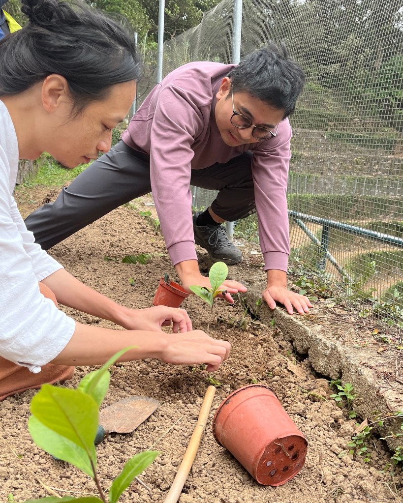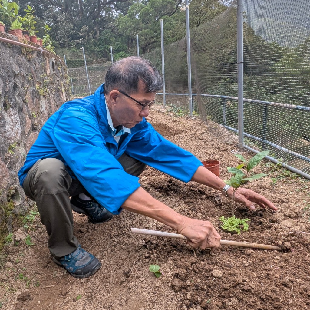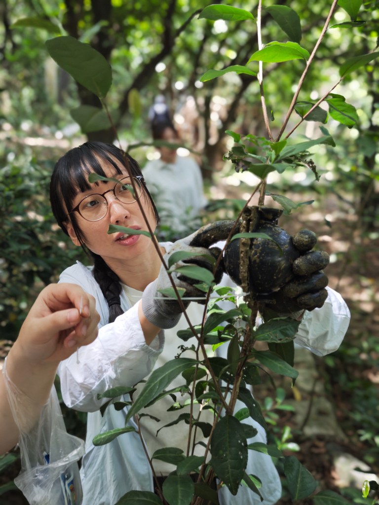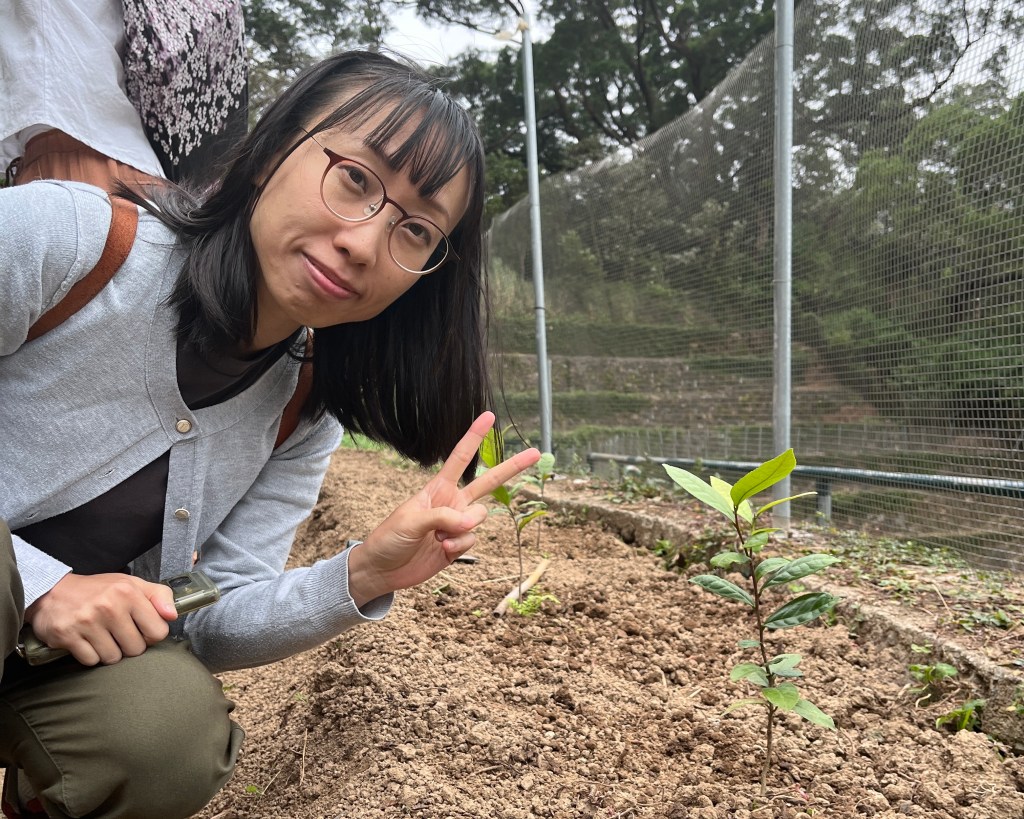 本會核心成員李妍小姐在古洞進行茶樹培苗工作