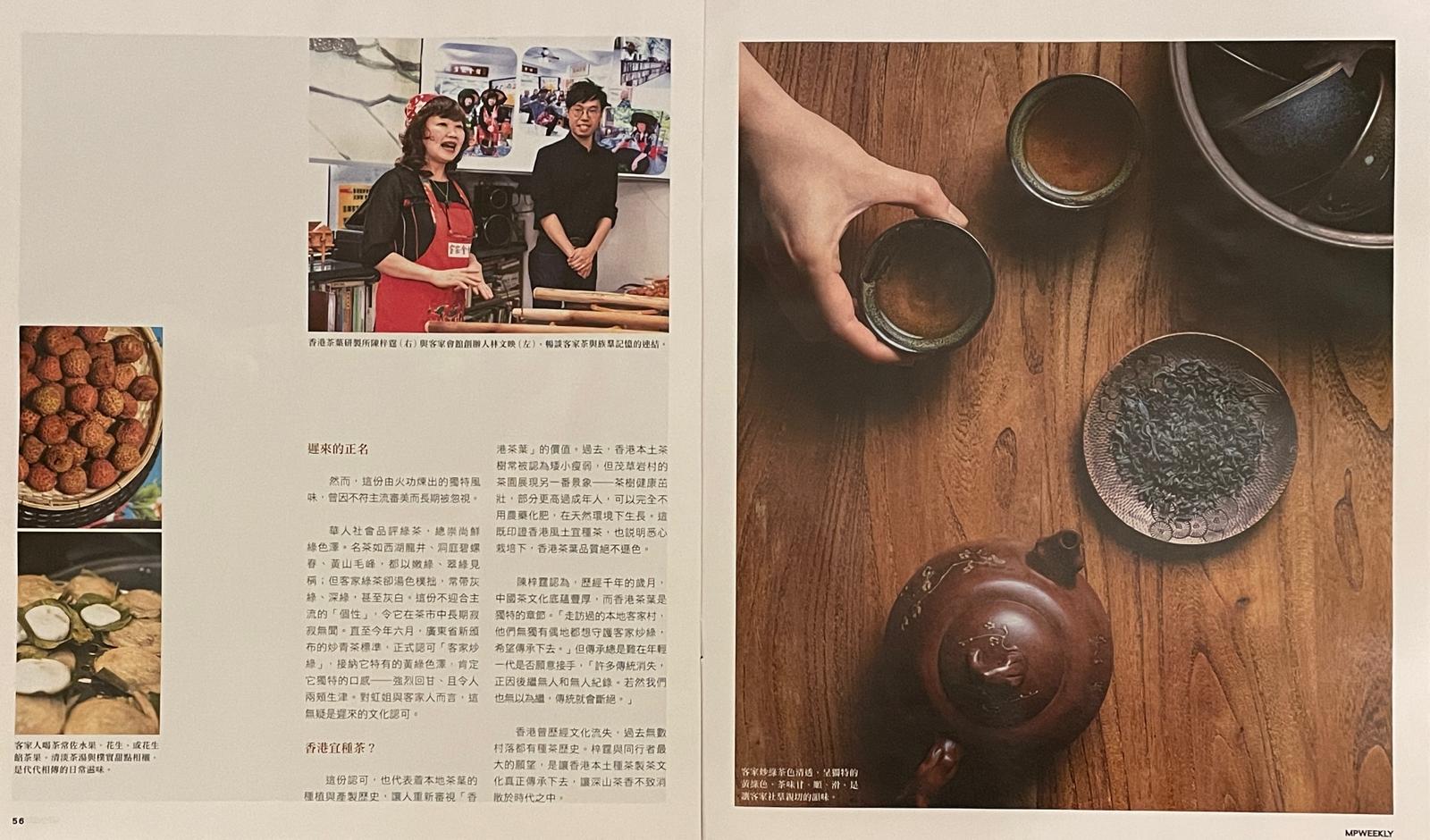 2025年12月19日星期五《明報周刊》2976期專題《客家炒綠 本地茶文化的傳承與新生》刊登本會報導,介紹本會核心成員陳梓霆先生在「尋味香港客家茶」活動中有關香港客家族群植茶傳統的發言及採製團隊成員、新界客藉原居民鄭天恩小姐的訪問。
